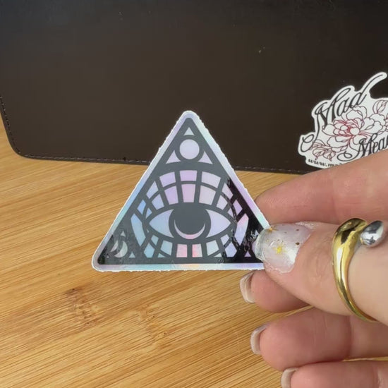This All-Seeing Eye iridescent sticker is our take on the Eye of Providence. A symbol of illumination, knowledge, protection, unity, and balance. It symbolizes spiritual insight, enlightenment, and the pursuit of knowledge; a positive force guiding one towards wisdom. The triangle reinforces the interconnectedness of mind, body, and spirit.