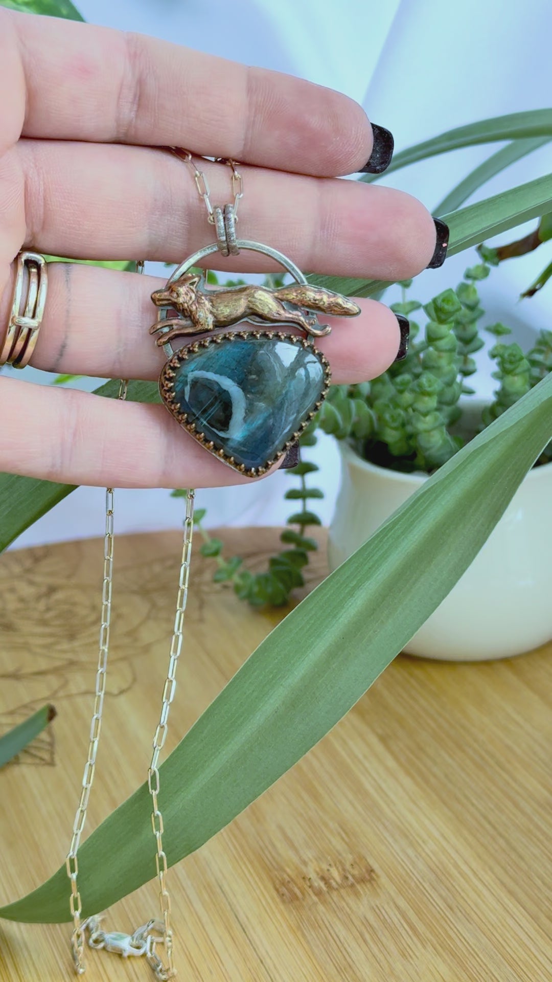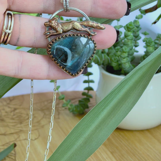 Fox and Heart Pendant Necklace with Labradorite Sterling Silver Charm